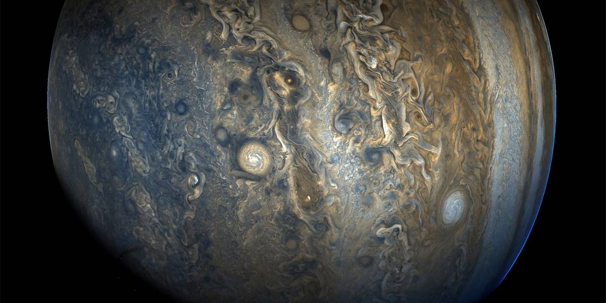 Com cerca de 140 mil quilômetros de diâmetro (tão largo quanto 11 Terras lado a lado), Júpiter tem 320 vezes mais massa que o nosso mundo, mas fica cinco vezes mais longe do Sol que a nossa casa. Por isso, Júpiter ainda continua parecendo apenas uma estrela brilhante no céu noturno.
