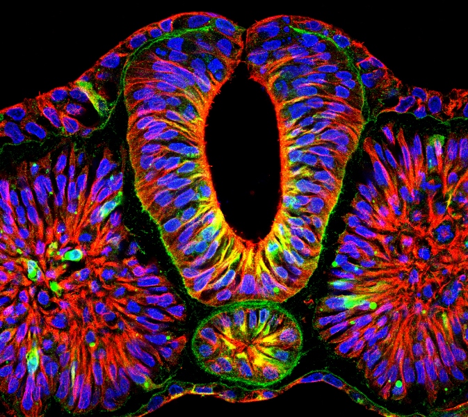 No início do desenvolvimento, mais precisamente na terceira semana de gravidez, um grupo de células na superfície do embrião decide se tornar o nosso sistema nervoso central. Neste momento, estas células estão organizadas em um epitélio, isto é, agarradas umas às outras lateralmente, como uma folha de papel, e agarradas a uma base de proteínas extracelulares, chamada lâmina basal. Após elas se decidirem por diferenciar em células neurais, iniciam uma série de alterações na sua forma que seguem uma coreografia populacional. No fim, aquelas células organizadas como uma folha de papel se dobram até formar um tubo, o tubo neural. Mais tarde no desenvolvimento, o tubo neural se diferencia em nosso cérebro e medula espinal.