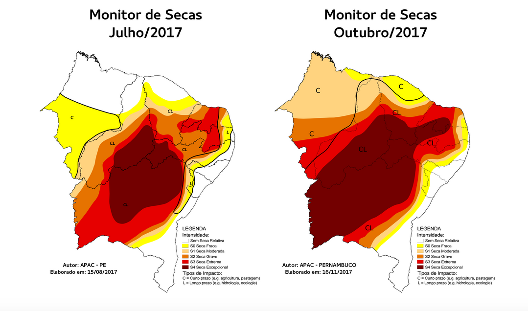 Os versos de Patativa do Assaré, eternizados na voz de Luiz Gonzaga, cantam a realidade do interior cearense. Em quatro meses consecutivos, o nível excepcional de seca, o mais severo, expandiu-se pelo Estado. Em setembro, o mapa do Monitor de Secas do Nordeste apontava 10,75% do território cearense com seca excepcional. Já em outubro, o número subiu para 24,61%, enquanto nos meses de julho e agosto, era de 0,01% e 5,28%, respectivamente.