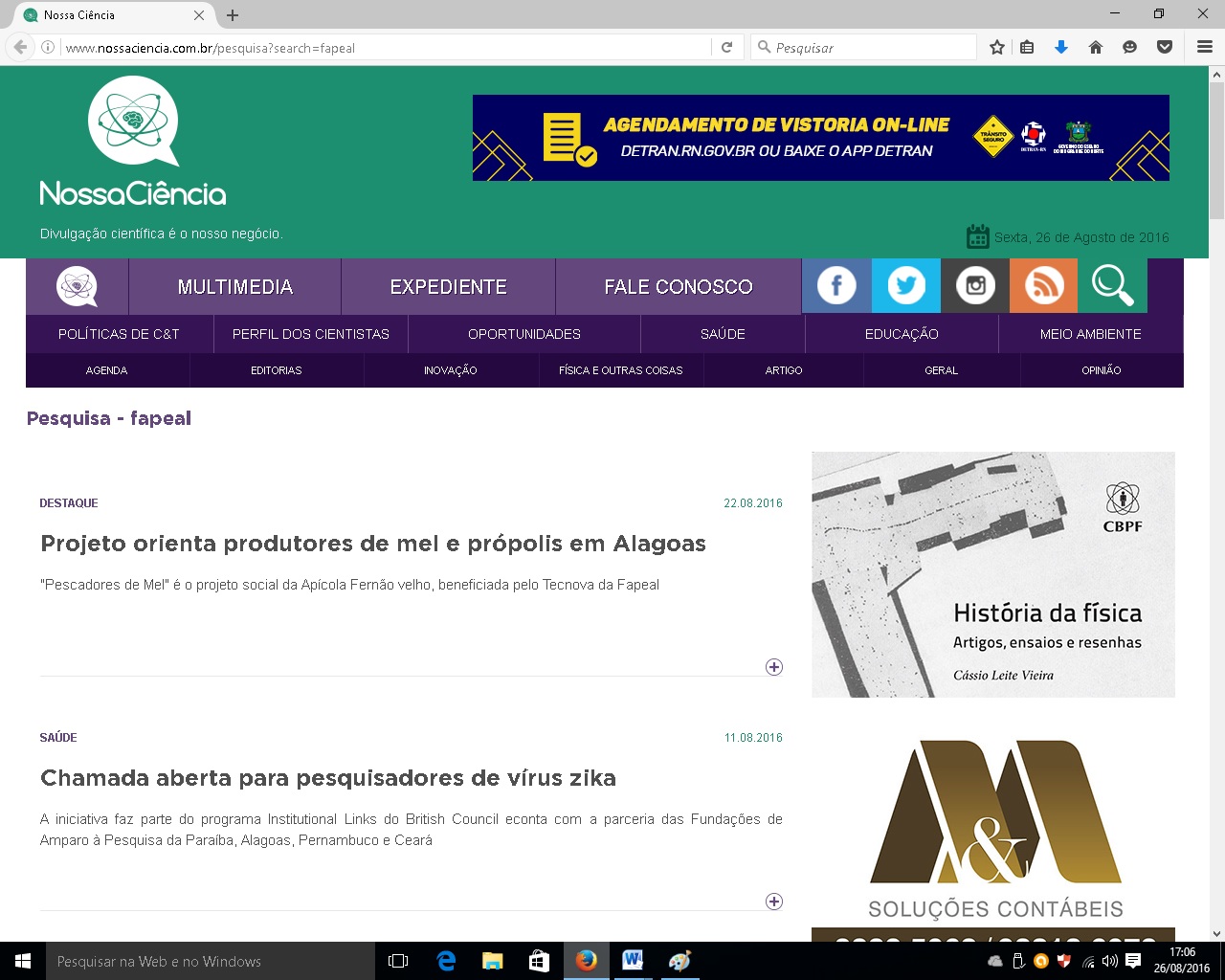 “Além disso, em 2016 conseguimos uma boa inserção nacional”, comentou o gestor em alusão às reportagens de TV e entrevistas de rádio com gestores e pesquisadores apoiados pela fundação e à reprodução de releases da Fapeal em veículos que são referência nacional na área de CT&I, como os sites Jornal da Ciência e Agência CT&I, o blog Direto da Ciência e o site/newsletter Nossa Ciência.