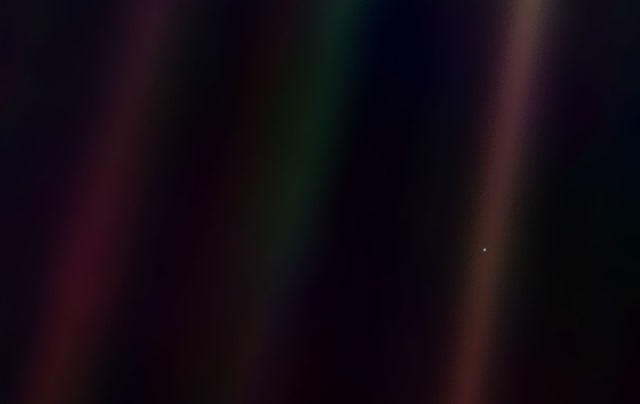 Já foi dito que astronomia é uma experiência de humildade e criadora de caráter. Não há, talvez, melhor demonstração da tola presunção humana do que esta imagem distante do nosso minúsculo mundo. Para mim, destaca a nossa responsabilidade de sermos mais amáveis uns com os outros, e para preservarmos e protegermos o “pálido ponto azul”, o único lar que conhecemos até hoje.”