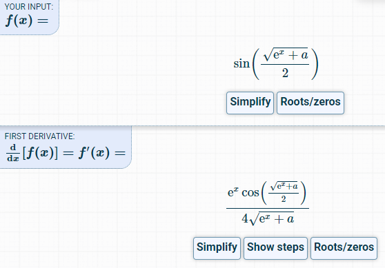 Derivada de f(x) = sin((square(exp(x)+a)/2)
