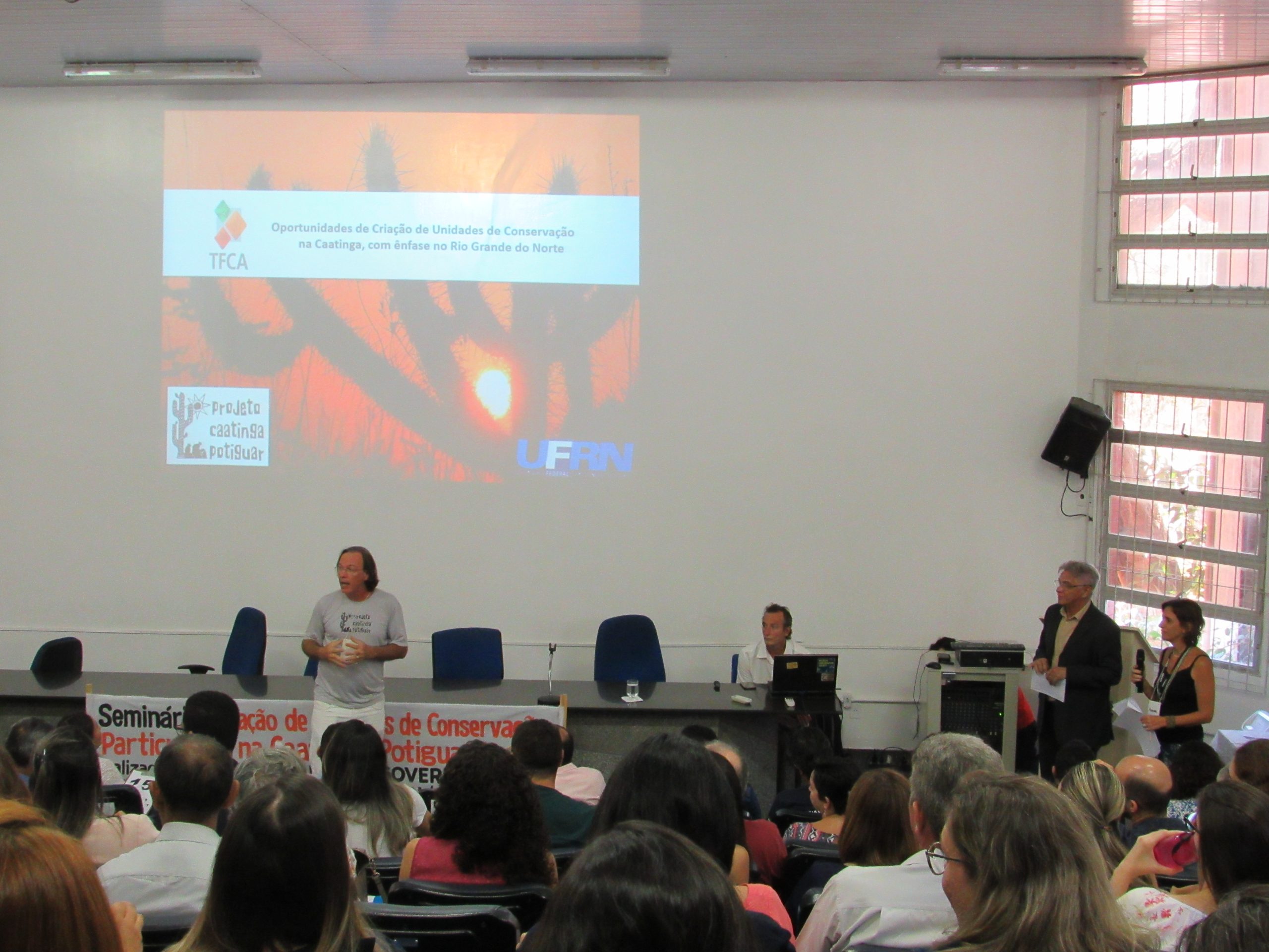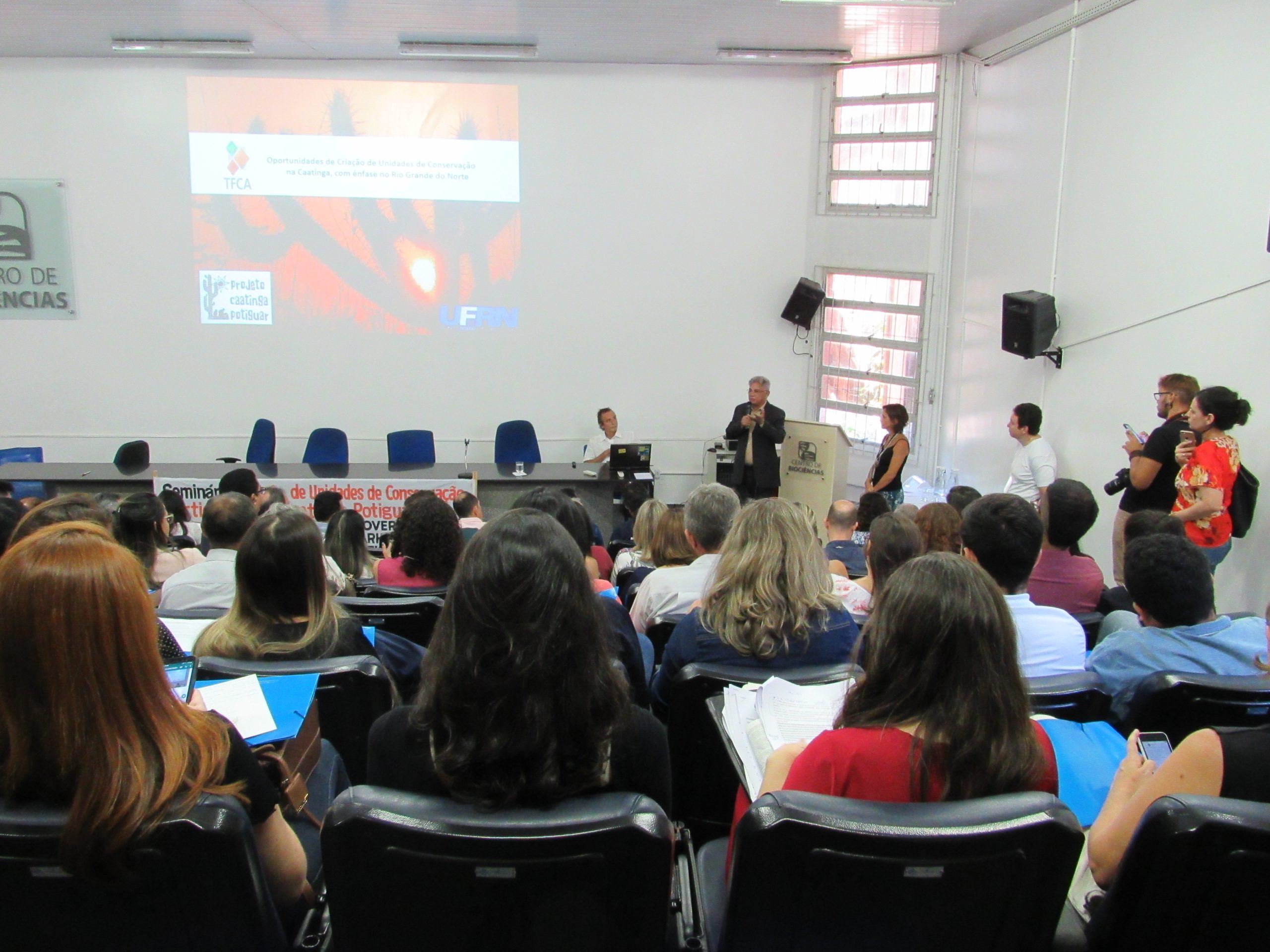 O debate aconteceu nos dias 30 e 31/10, no Centro de Biociências da UFRN, durante o Seminário “Criação de Unidades de Conservação Particulares na Caatinga Potiguar”. O evento teve como objetivo discutir os desafios, ferramentas e procedimentos necessários à implementação das Unidades de Conservação (UCs) de caráter privado na caatinga, além de subsidiar propostas de incentivo à criação de Reservas Particulares de Patrimônio Natural (RPPNs) no RN.