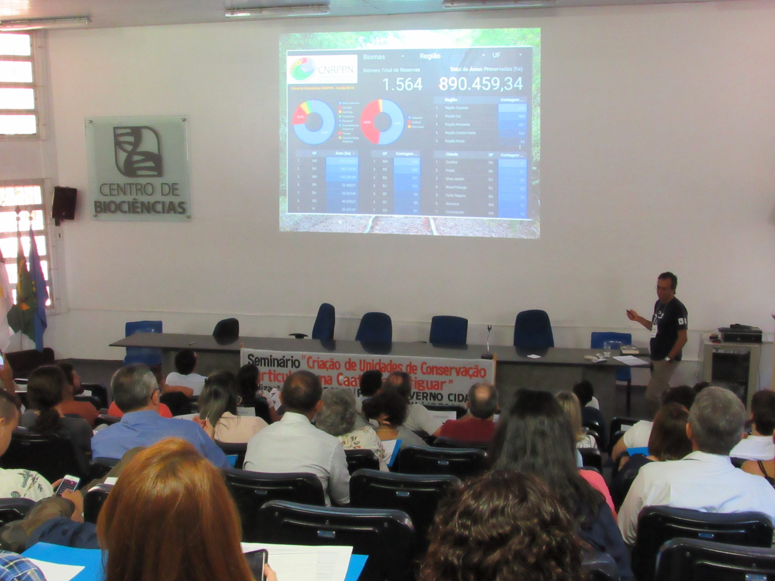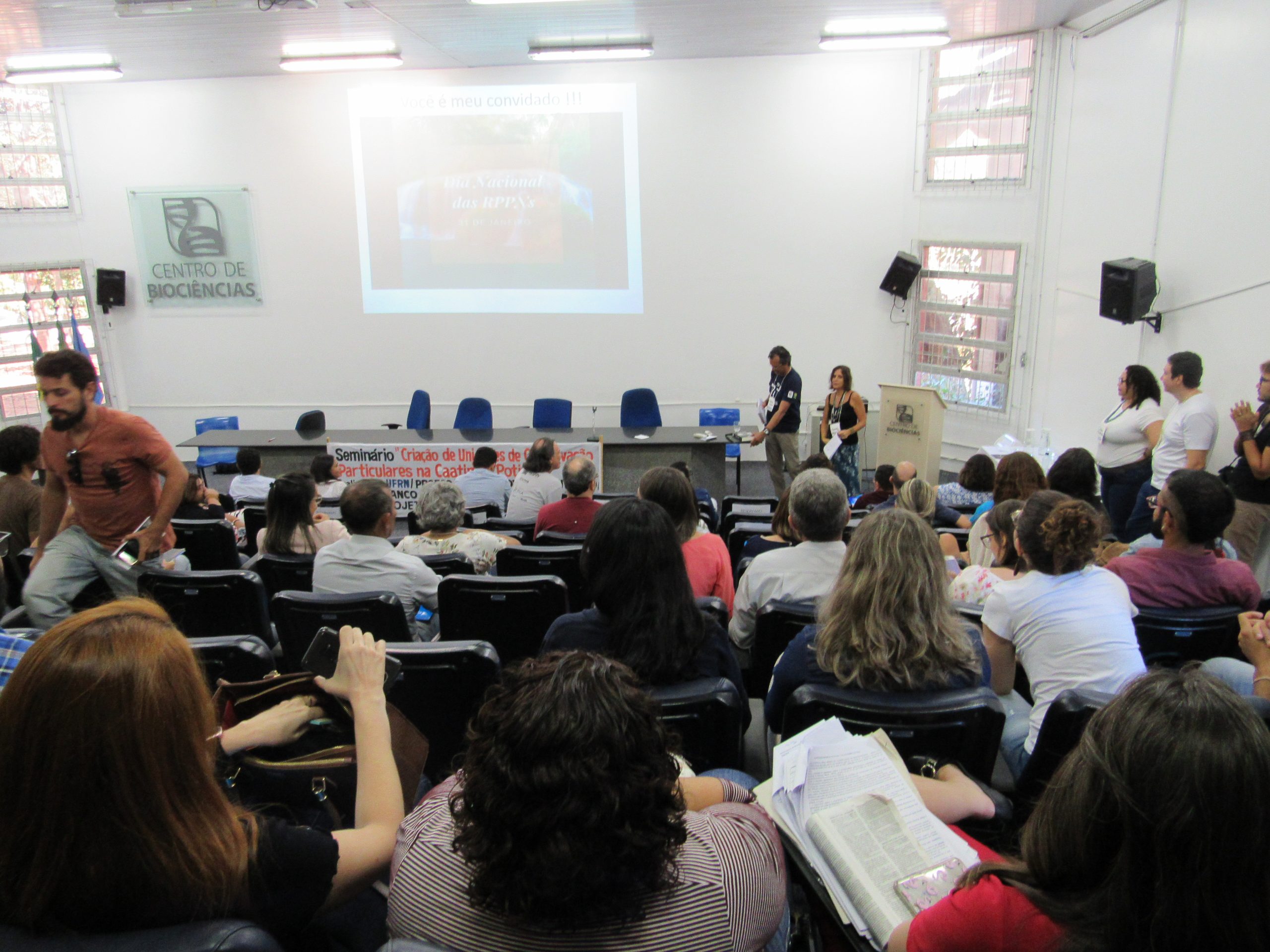 Em seu primeiro dia (30), o seminário reuniu diferentes setores interessados no tema como proprietários de terras, órgãos ambientais estaduais, ONGs, ambientalistas, estudantes e simpatizantes do tema. A programação foi intensa e trouxe importantes contribuições no que diz respeito à conservação da biodiversidade no Brasil e da caatinga potiguar, além da importância de reservas particulares no Brasil, e de como elas podem ser aliadas em prol do desenvolvimento sustentável. Estudantes dos cursos de Ecologia e Ciências Biológicas puderam conhecer os desafios relacionados à criação de UCs privadas – experiência que os aproxima do mercado de trabalho, especialmente para as oportunidades nas áreas de conservação e áreas de preservação. Convidados puderam expor suas experiências com a criação de RPPNs e proprietários de terras tiveram oportunidade de entender a importância da criação de UCs em suas propriedades, incluindo esclarecimentos sobre possíveis incentivos e benefícios econômicos.