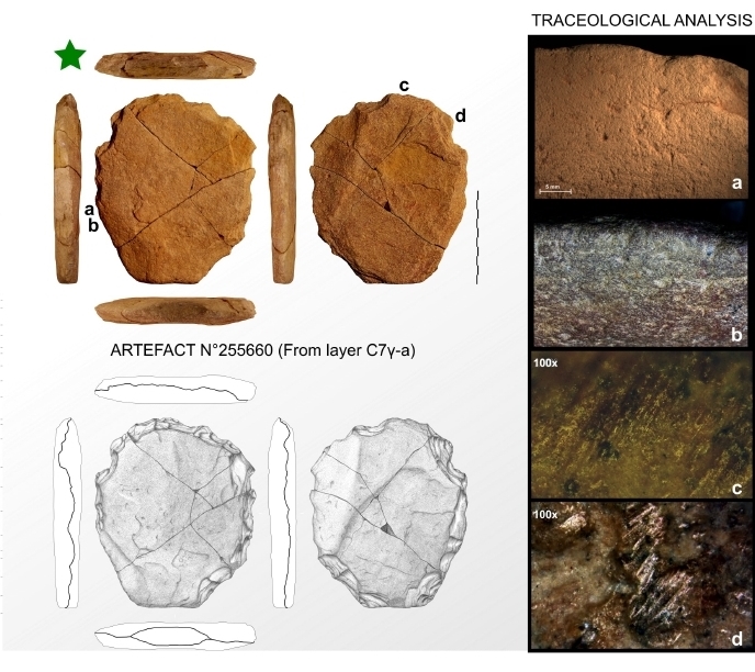 As análises realizadas detalham a forma com a qual foi ele foi elaborado, muito complexo para esta idade (tratamento em duas faces da pedra para obter um fio cortante, entre outros aspectos).