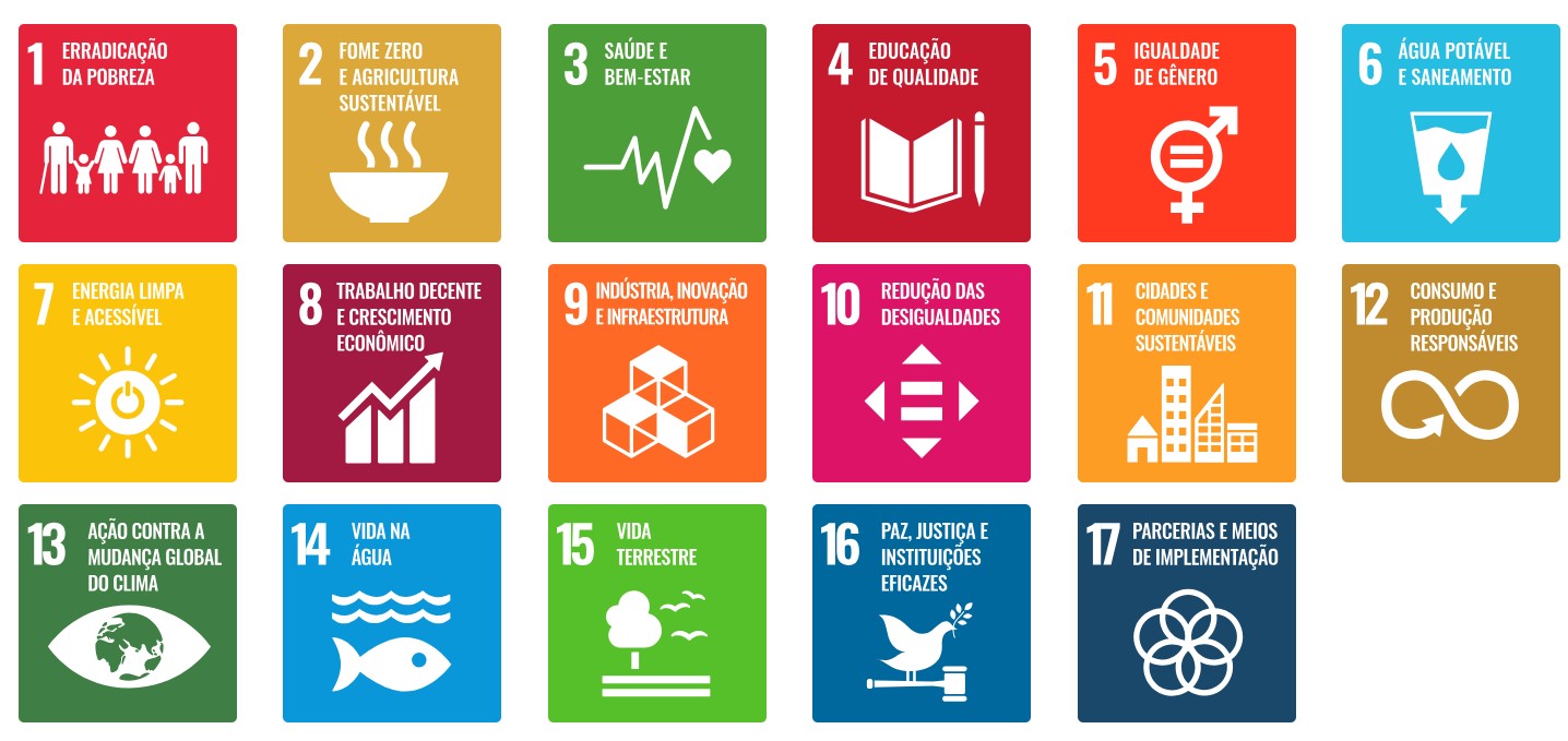 Quando se fala em sustentabilidade, algo automático em nossa mente deveria nos conectar aos 17 objetivos de desenvolvimento sustentável da ONU, resumidos no quadro que abre esse texto.