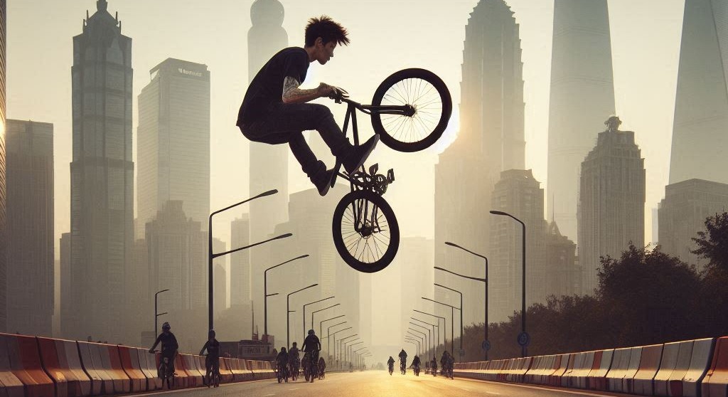 Manobra radical com a byke-potencial (Gerado via Copilot)