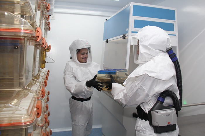A implantação do laboratório ocorreu em duas etapas: a primeira, realizada entre 2021 e 2022, e a segunda, marcada por novas adequações de infraestrutura e segurança, concluídas neste ano, quando o espaço está sendo entregue pronto para uso. Com investimento de aproximadamente R$ 3 milhões, o ambiente conta com estrutura tecnológica avançada e é composto por três áreas principais: a sala de quarentena, destinada à observação inicial dos animais; a sala de experimentação; e a sala de inoculação, onde os animais permanecem sob monitoramento durante os testes.