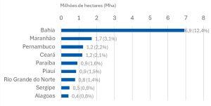 No Nordeste, o estado com maior área disponível e que poderia ser convertida para outros usos, sem ser necessário o desmatamento ou qualquer outra conversão de uso da terra, é a Bahia. A disponibilidade de áreas para expansão da agricultura no estado é de 6,9 Mha. “E a Bahia é o terceiro maior estado, atrás de Minas Gerais e Mato Grosso, com disponibilidade dessas áreas, porque são hoje áreas degradadas, que poderiam ser utilizadas para biocombustíveis”, afirma Felipe Barcellos e Silva, autor do documento e pesquisador do IEMA, em entrevista ao Portal Nossa Ciência.