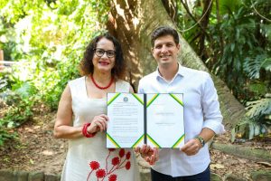 Ministra Luciana Santos e o prefeito João Campos, do Recife. (Foto: Diego Galba / MCTI)
