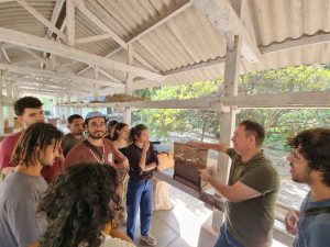 O professor comentou também sobre a espécie exótica Apis mellifera, destacando que, diferentemente das nativas, ela possui capacidade de migração. Segundo ele, quando falta alimento em um local, essas abelhas se deslocam para áreas mais favoráveis, característica que contribuiu para sua ampla adaptação no país, inclusive no Nordeste.