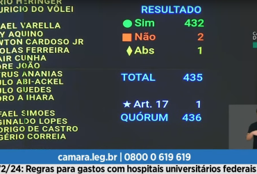 Câmara dos Deputados aprovou, com 432 votos a favor, dois contrários e uma abstenção, o ...